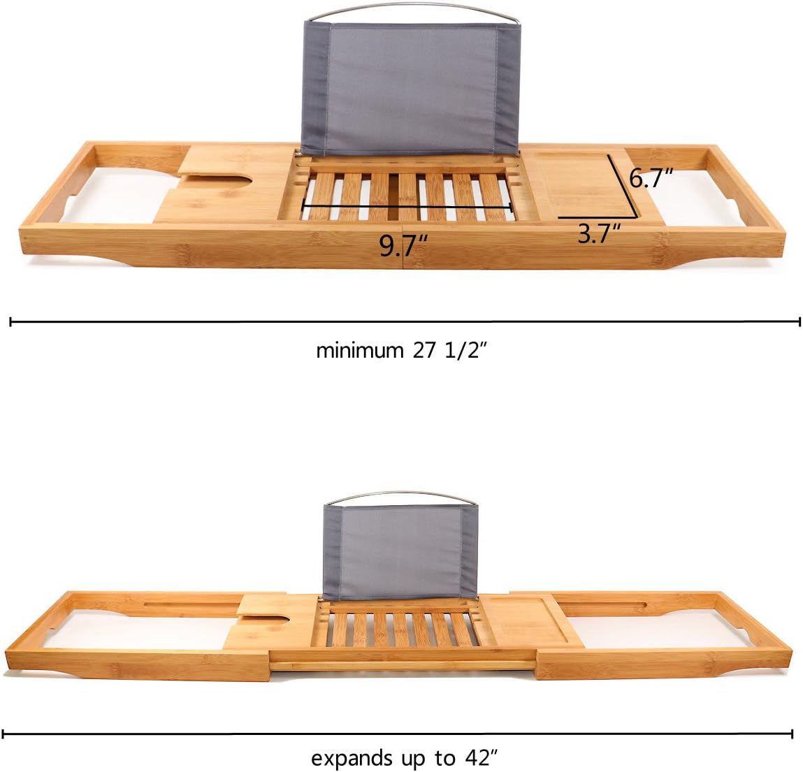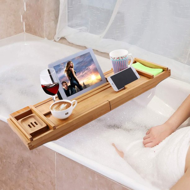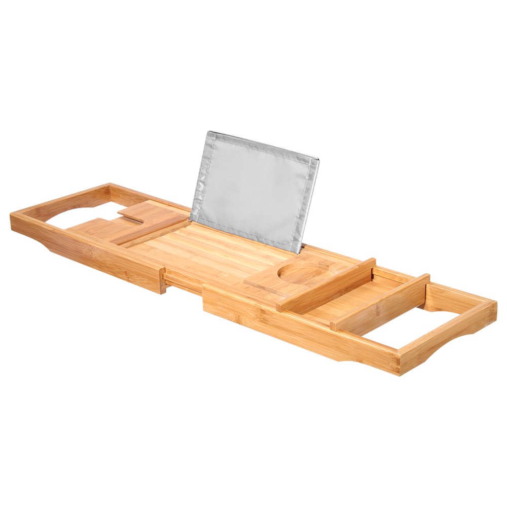 Bamboo bathtub tray bath table adjustable caddy tray with extending sides, cellphone tray and newly designed: The perfect gift for her. The fact that its resistant to water will enhance the lifespan and durability of your tub tray. Utoplike bamboo bathtub caddy tray bath tray for tub, adjustable bathroom bathtub organizer with. Luxury bamboo bath bridge tub caddy tray rack bathroom shelf, slim design, extendable durable bamboo and metal material in exquisite workmanship for many years use can be placed on bathtub for holding items for ipad, tablet, books, wine and food can be placed on it for.