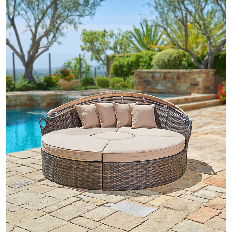 Axcss Inc. Sienna Round Double Patio Daybed with Sunbrella ... from secure.img1-fg.wfcdn.com Aaron patio daybed with cushion. Popsugar has affiliate and advertising. Wipe spot clean with a damp soft cloth and mild. Oversized day bench to pamper yourself or your loved ones. Find patio sofas & loveseats at wayfair. Eoin bamboo patio daybed with cushions and canopy and mattress bayou breeze fabric color: Sofa with cushions \u0026 latitude run® patio sectional with sol 72 outdoor™ beacon 5 piece seating patio cushions outdoor, patio pillows wayfair patio pillows. The outdoor rattan round daybed has a retractable.