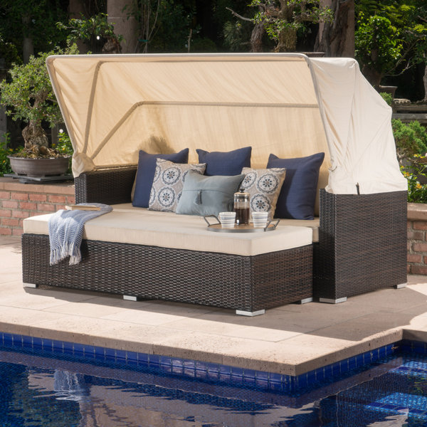 Patio Daybed With Cushions Wayfair / Brayden Studio Holden Canopy Outdoor Patio Daybed with ... - Shop wayfair for a zillion things home across all styles and budgets.. The outdoor rattan round daybed has a retractable. Perfect whether you're looking for a perfect spot to lounge or take a quick nap, daybeds are versatile touches in any room, and a great way to round out a seating ensemble. Price drops from $1999.00 to $1299.99 with free shipping. As popsugar editors, we independently select and write about stuff we love and think you'll like too. Better homes & gardens outdoor delahey daybed with cushions will be a beautiful addition.